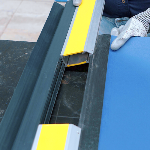 Carril UHMW (sin necesidad de lubricación) donde la hoja de la puerta discurre por nuestro sistema vPull con un mínimo espacio requerido